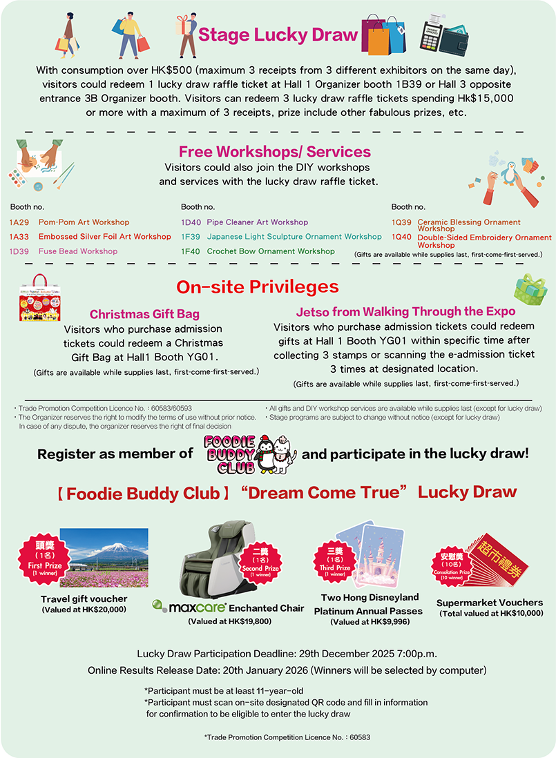This year, the 23rd Hong Kong Mega Showcase and Hong Kong Food Festival are partnering for the first time with Wonder as the Official Digital Payment Provider. On-site ticket purchases will fully support major electronic payment methods, including Visa, MasterCard, UnionPay, Octopus, PayMe, AlipayHK and WeChat Pay HK, offering visitors a more flexible and convenient ticketing experience.