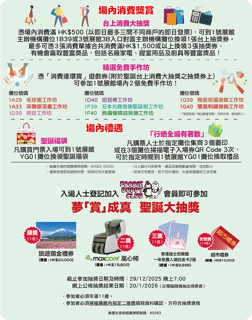 香港冬日美食節及冬季購物節今年首度與大會指定電子支付夥伴 Wonder 攜手合作,現場購票將全面支援Visa、MasterCard、銀聯、八達通、PayMe、Alipay HK、WeChat Pay HK 等主流電子付款方式,為入場人士提供更靈活便捷的購票體驗。