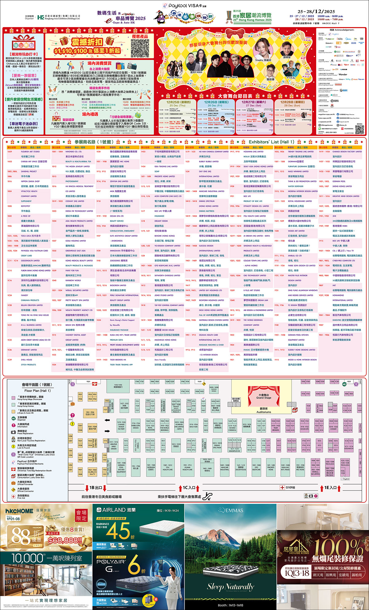 香港是家品採購樞紐,家品市場持續擴張。已舉辦超過25年的「家居潮流博覽」,匯聚傢俱家品和電器品牌,更主力推廣設計及創意元素,滿足市民進行一站式和多目標的消費需求,創造一個既具風格又切合實際需要的家。家居潮流博覽展品內容豐富,場內展品包括傢俱家品、名牌床褥及寢室用品、按摩椅、家電廚具、裝修建材、電子門鎖、衛浴設備及生活用品等,讓你掌握家居潮流脈搏。除了請來專業驗樓師詹sir教驗樓、裝修顧問林Sir教裝修需知及裝修學院校長Simon Tang分享DIY維修知識,跟大家分享實用資訊外,仲有群星現場同你歡度聖誕!