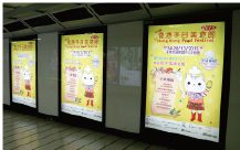 Large-scale outdoor billboard advertising placed in Cross-Harbour Tunnel in order to enhance the promotion effect. LED monitor advertisement or light box advertisement are placed at crowded shopping mall including CKe Shopping Mall, Causeway Plaza 2, APM, Tai Po Mega Mal, Yuen Long Landmark, Metropolis Plaza, World Trade Centre and King Wah Center, etc. In- store digital advertisement at local chain store such as 7-11, DG Lifestyle Store, Vogue Laundry, etc.